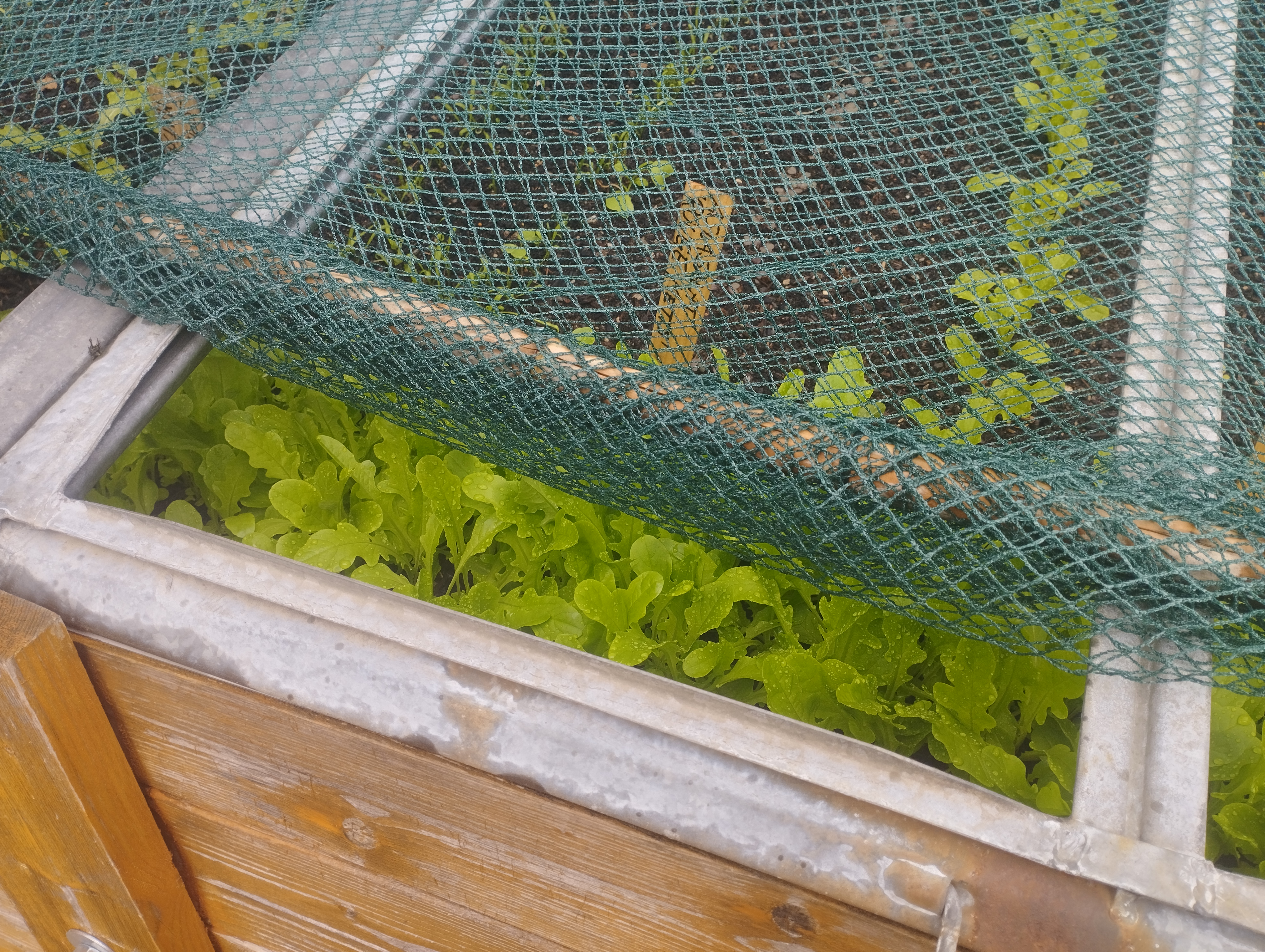 A veteményes kertekben árnyékolással védekezhetünk. A fóliasátrakat, üvegházakat festéssel, meszezéssel, vagy árnyékoló hálók kifeszítésével árnyékolhatjuk. Szabadföldi termesztésnél egyetlen lehetőség az árnyékoló (raschel) hálók alkalmazása, amit kritikus időszakban, akár 2-3-szoros rétegben egyszerűen csak az állományra borítva, így is sokat tehetünk a napperzselés ellen. A Kertészetei Egyetemen végzett régebbi kísérlet szerint a kétszeres vagy háromszoros rétegben kifeszített sárga és sárgásvörös színű raschel hálók használata bizonyult a legjobbnak.