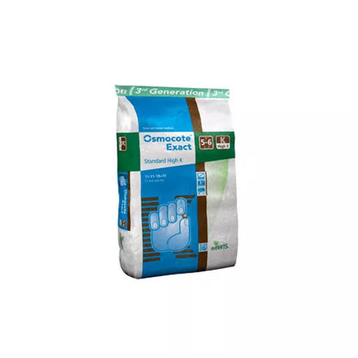 Programozott tápanyagleadású műtrágya Az Osmocote Exact standardra jellemző minőségi paraméterek speciális összetételekkel.Ezeket a típusokat a lágyszárú évelőkhöz vagy a káliumigényes és virágjukkal, bogyójukkal díszítő fajokhoz fejlesztették ki. A tápanyagok feltáródása az egész hatástartam alatt egyenletes (standard típus). Hatástartam: 3-4, 5-6 és 8-9 hónap,amelyet a piros,barna és kék színkódú szemcsék jeleznek .