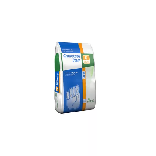 Az Osmocote Start teljesen burkolt, 12-11-17 NPK-összetételű, a szükséges mikroelemeket is tartalmazó műtrágya. Finom burkolata lehetővé tesz azt, hogy a tápanyagok egyenletes és szabályozott ütemben táródjanak fel, és legyenek hozzáférhetők a növények számára, miközben a termesztő közeg EC-je rövid termesztési időszak alatt is kedvezően alacsony szinten marad.
