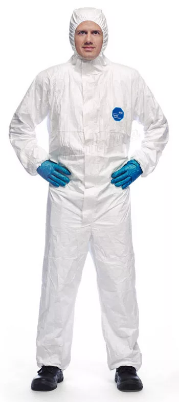 • Tyvek® 1431N polietilén anyagú (41 g/m2), fehér, kapucnis védőoverall • véd 1 mikronnál (μ) nagyobb szemcsenagyságú porok, és radioaktív részecskék ellen • 480 percig véd 30% kénsav, 50% foszforsav, 40% nátriumhidroxid és 12% nátrium-hipoklorid ellen ...
