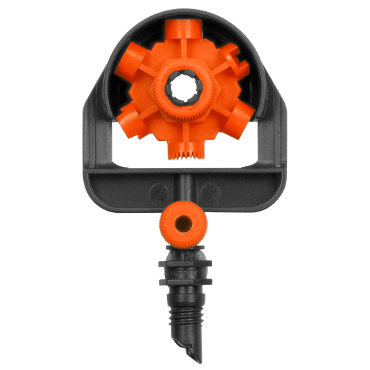 A GARDENA Micro-Drip-System részét képező GARDENA 6 felületű fúvóka tökéletes eszköz a rugalmas öntözéshez. Forgatógombja segítségével egyszerűen kiválasztható a kívánt öntözési forma. A lehetséges formák: 90°, 180°, 270°, 360°, csík és vég-csík. Még nagyobb rugalmasságot biztosít a szabályozható hatótáv. A fúvóka hosszabbítócső (cikkszám: 1377-20) segítségével felemelhető a magasabb növények optimális öntözéséhez. A csomag két fúvókát tartalmaz.
