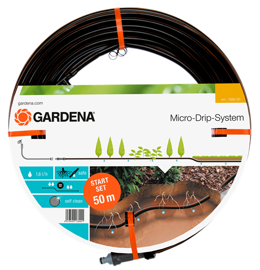 A 13,7 mm átmérőjű föld alatti csepegtetőcsövet a föld alá kell telepíteni, ahol nem látni. Szegélynövények és gyepfelületek öntözésére szolgál. A csepegtetők közötti távolság a csövön 30 cm. Mindegyik csepegtető kíméletes öntözést biztosít 1,6 l/órás vízleadással. A csepegtetők önzárók, így üzemen kívüli időszakban nem szennyeződnek el. Gyökérzárral rendelkeznek, amely megakadályozza a gyökerek belenövését a föld alá telepített csőbe. Az alapelemet középre telepítve, a csepegtetőcső az 1395-20 cikkszámú készlettel 200 méterig hosszabbítható. A víznyomás a csepegtetőcső minden pontján azonos, ami egyenletes öntözést biztosít. Az 50 méter hosszúságú csepegtetőcsövet csatlakoztatásra készen szállítjuk 1000-es alapelemmel, záróelemmel és T-elemmel.