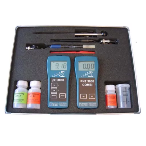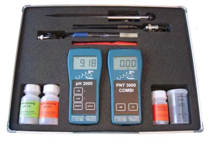 A kombinált talajvizsgáló mérő bőrönd egy professzionális, nagy pontosságú pH mérőt, egy kombinált AM/EC mérőt és ezek használatához és hitelesítéséhez szükséges tartozékokat tartalmaz. A műszerek használatával elvégezhetők azok a legfontosabb mérések, amelyek egy kertészetben nélkülözhetetlenek a növények számára. Ez a talajvizsgáló készlet ideális, növénytermesztőknek, szakértőknek, intézeteknek.