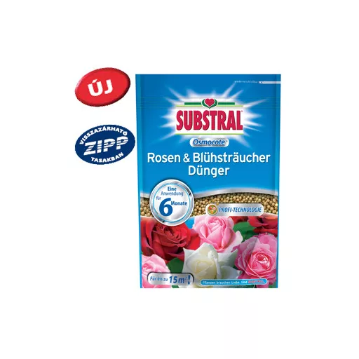 Magas minőségű granulált műtrágya 6 hónapos hatástartammal Szabályozott tápanyagleadás Optimális tápanyag összetétel magnéziummal és vassal az erős és zöld levelekért NPK 17-9-11 + 2MgO + mikroelemek Szabályozott tápanyagleadás – biztonság és kényelem. 100%-ban burkolt granulált műtrágya. Egyetlen alkalmazás során 6 hónapra elegendő tápanyagot juttatunk növényünk talajába. Ezután már csak öntözni kell. Nem lehet túladagolni. A tápanyag kibocsátást a föld hőmérséklete szabályozza. A hatástartam megállapításánál 21°C hőmérséklettel számoltak. Hidegebb időben a folyamat lelassul, ezáltal kitolódik a hatástartam. EK műtrágya Tápanyagellátás a teljes szezonra minden rózsa fajtához, futó- és bokor rózsákhoz.
