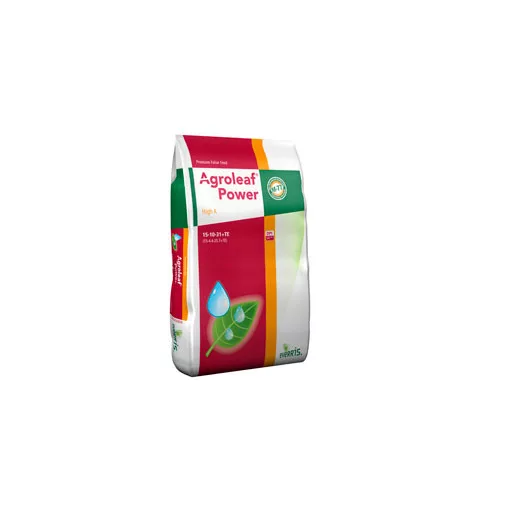 Agroleaf Power High K egy olyan lombtrágya, mely megakadályozza és helyreállitja a kalium-, és egyéb tápelem hiányok kialakulását. Hatása legjobban szűkös termesztési feltételek mellett észlelhető, mikor a gyökereken keresztül történő tápanyag felvétel nehézkes. Ösztönzi a korai érést, erősiti a színeket és növeli a gyümölcsök cukortartalmát és húsának keménységét.