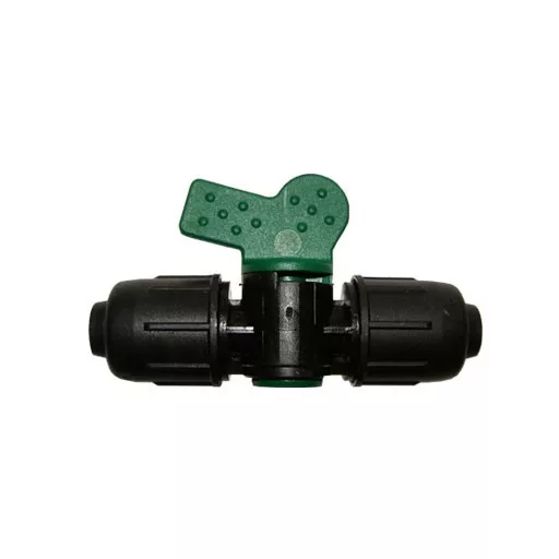 A műanyag zöldkaros csappal szabályozhatjuk az egyes öntözési zónákhoz eljutó víz mennyiségét illetve teljesen el is zárhatjuk. Segítségükkel olcsón szakaszolhatjuk öntöző rendszerünket, leágazhatunk egy mikroöntöző zónához.