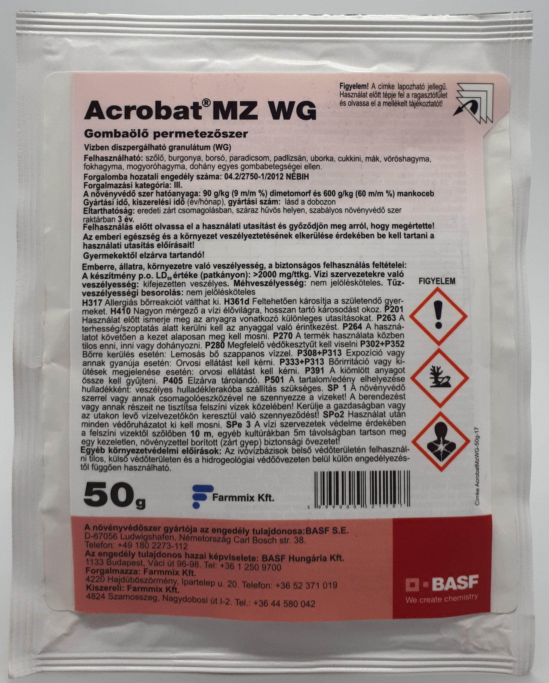 Hatóanyag: 9.0 % dimetomorf+60.0 % mankoceb