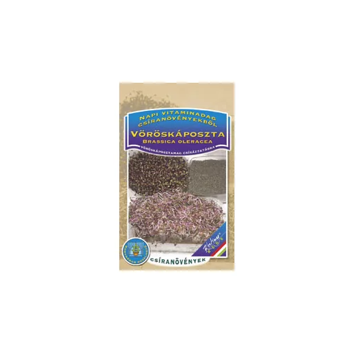 Alkalmazás: Csíráztatás előtt mossuk meg jól a magokat, beáztatni nem szükséges. Helyezzük a tálat vagy a csíráztató üveget világos, de ne napsütötte helyre. Felhasználás: kiválóan fogyasztható vajaskenyérrel, salátákban, müzlikben. Kiváló gyulladáscsökkentő hatású, fekélygyógyító és vértisztító. Daganatnövekedést blokkoló enzimeket tartalmaz. Sok C vitamint, B1-, B2 vitamint, és asványi anyagot (K, Ca, Mg) tartalmaz. Latin megnevezés: Brassica oleracea. Vetés: egész évben vethető. Egy tányérhoz 1 evőkanál magot szórjunk nedves szűrőpapírra Hőmérséklet: 20 0C Öntözés: naponta kétszer öblítsük át friss vízzel. Csírázási idő: 6 nap