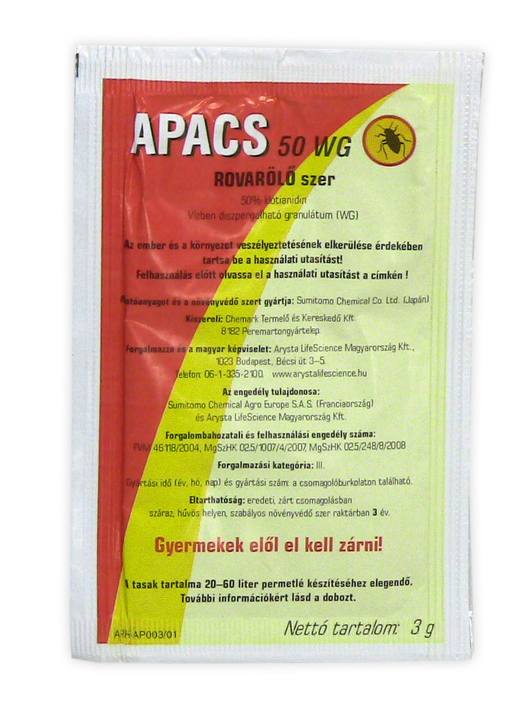 Alma, körte Levéltetvek 100 - 150 g/ha 600 - 1200 14 nap