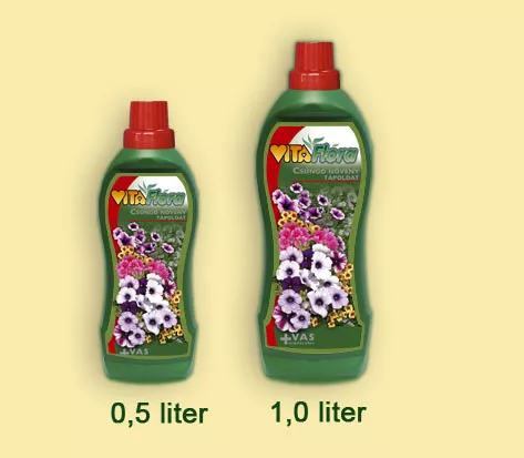 A fél- és egyliteres flakon kupak adagolóhengerét használva: fél adagolóhengernyi tápoldatot keverünk 3 liter öntözővízhez.
