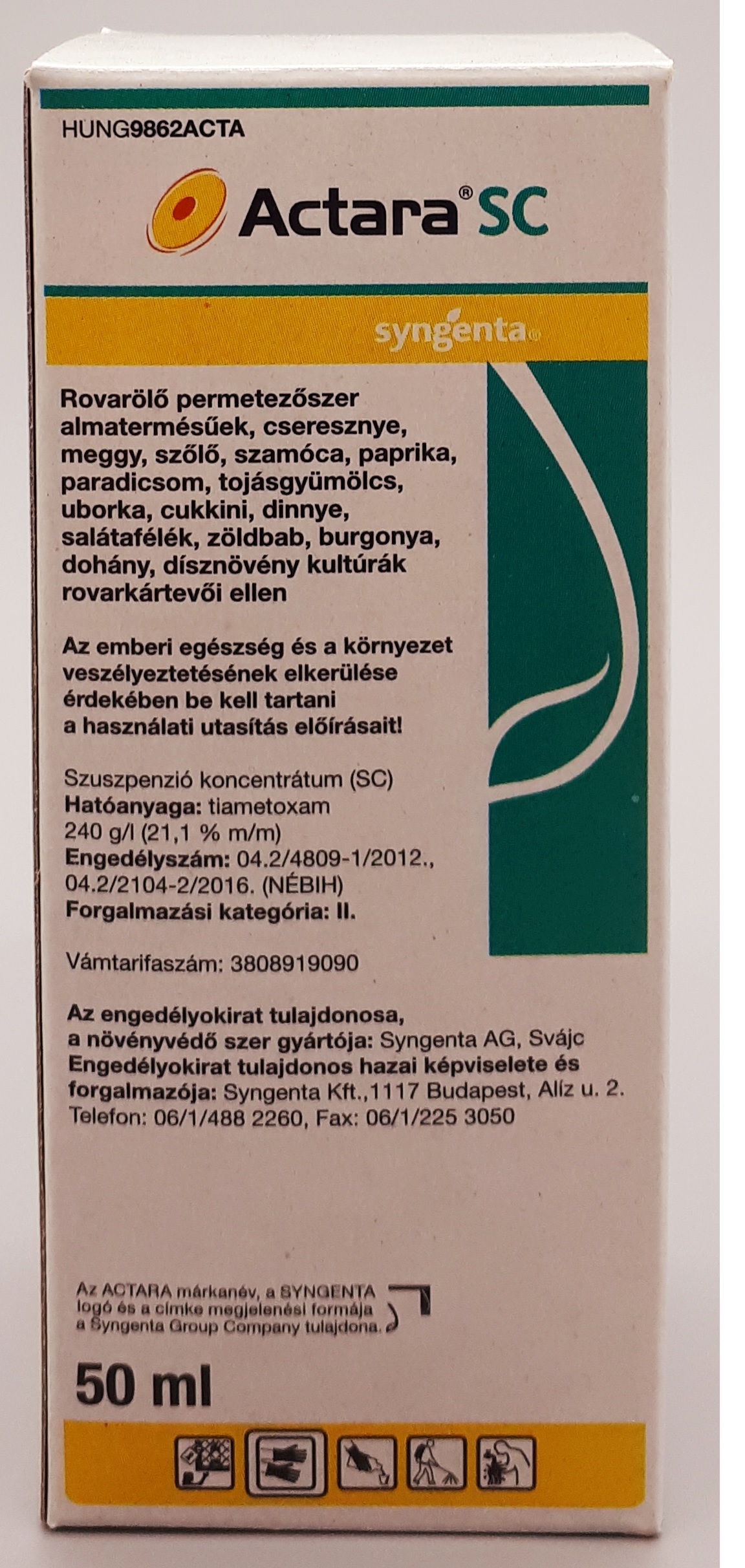 Alkalmazható bemártásos, illetve palántabeöntözéses technológiában is, uborka, paprika, paradicsom, tojásgyümölcs, cukkini, dinnye és salátafélék kultúrákban. Az Actara hatóanyaga, a tiametoxam érintő és gyomorméreg. Gyors kezdeti hatása akár 2–3 hetes tartamhatással is párosul. Az Actara alkalmas a más szerekkel szemben ellenálló rovarok leküzd...