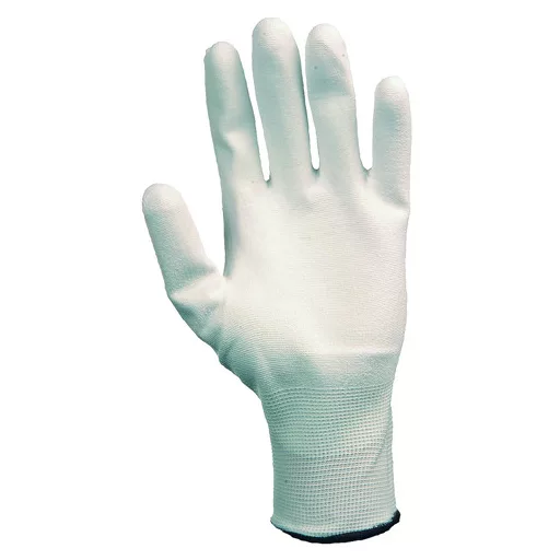 Munkavédelmi kesztyű precíziós fehér, tulajdonságai: Alapanyag: kötött, rugalmas, nagy szakítószilárdságú 100% poliamid szál Rendelhető méretek: 7,8,9,10 Komfort: -tenyéren fehér poliuretánnal mártott, fehér precíziós kesztyű gumírozott mandzsettával, sze...