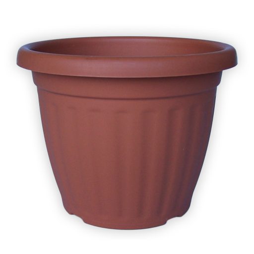 Dekoratív terrakotta színe agyagcserép jelleget kölcsönöz a műanyagból készült edénynek.