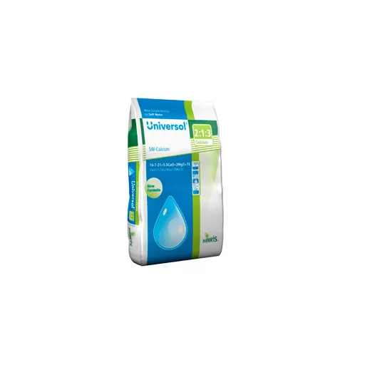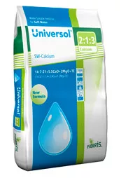Az Universol Soft Water Calcium öntözőműtrágyát kifejezetten lágy öntözővízhez fejlesztették ki, folyamatos kalcium- és magnéziumpótlás céljából. 2:3 N:K-arányú, káliumtúlsúlyos termék, így virágzó dísznövények termesztéséhez kifejezetten alkalmas. Az Universol SW-Calcium kalcium-nitráttal egytartályos rendszerben keverhető, így az N:K-arány kiegyensúlyozható.