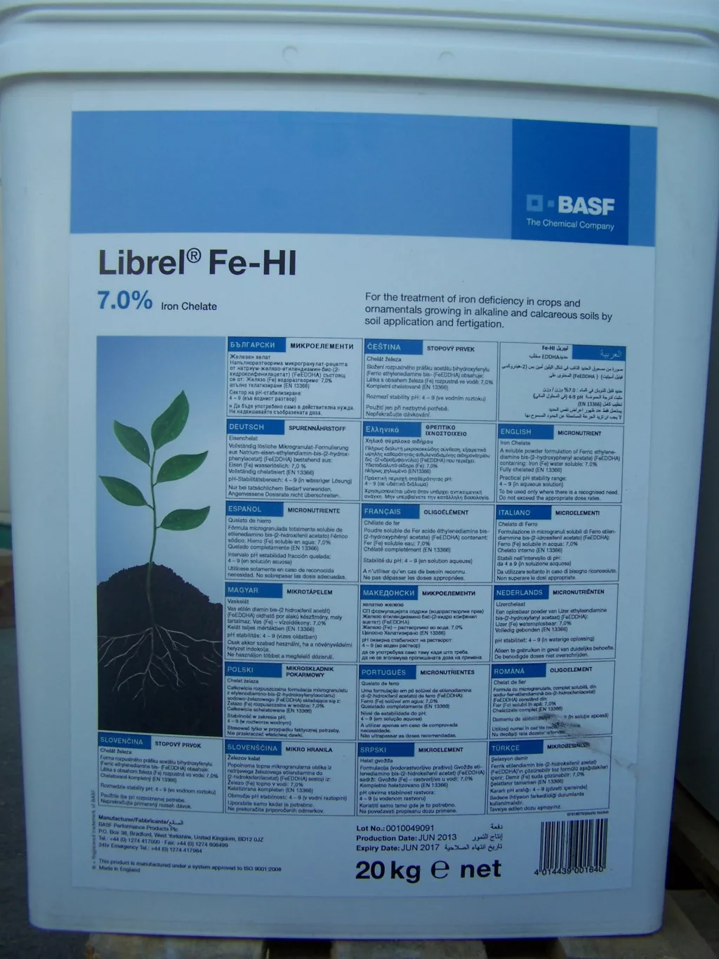 A vas ebben a műtrágyában EDDHA-keláthoz kötődik. Ez a kelát olyan növényekhez alkalmas, amelyekben a pH 6,5 körül vagy afölött van. 10-es pH-értékig stabil.