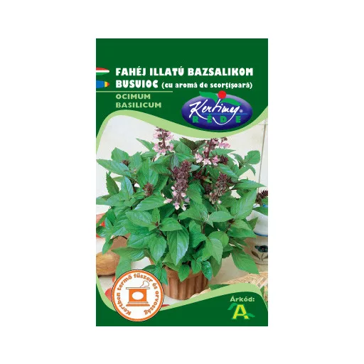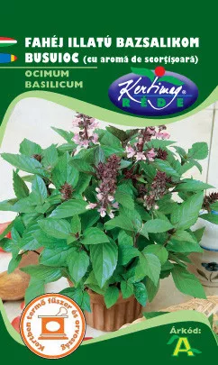 A fahéj illatú bazsalikom egyéves, 40-50 cm magas, dekoratív, meleg- és fénykedvelő növény. Levelei közepes méretűek, virágai rózsaszínek. Kiváló aromájú, az egész növény fahéj illatú.