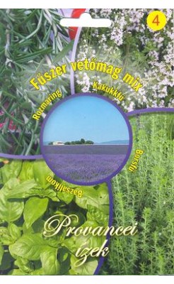 A tasak 4-féle fűszernövény - bazsalikom, rozmaring, kakukkfű, borsfű - vetőmagját tartalmazza. Szabad földön vetve vagy cserépben, balkonládában, erkélyen, konyhaablakban is nevelhetjük.
