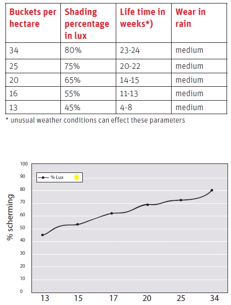 • Magas (min. 65%) árnyékolásnál ajánlott