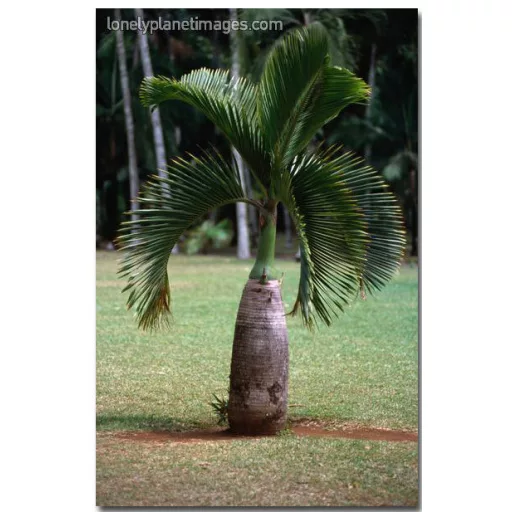A törzs megvastagodása a fiatal példányoknál is látszik, kerek dudorként a törzsön, mely aztán az évek folyamán fokozatosan növekszik és nyúlik. A lombozat zöld, 4-8 szárnyas, lefelé ívelő levélből áll, mely a törzs tetején helyezkedik el, hosszúságuk a 3,1 méter is elérhetik.