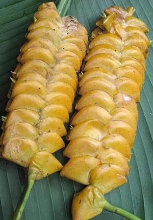 Egynemű zöld, 40 cm hosszó levéllemezei felálló, hosszú nyélen ülnek. Virágai feltűnő sárga színűek. Igazán megdöbbentő látványt nyújtanak.