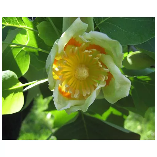 Magassága természetes körülmények között eléri a 30m-t. Levelei nagyok, virágja sárgásszöld színű, a tövüknél narancssárgák.