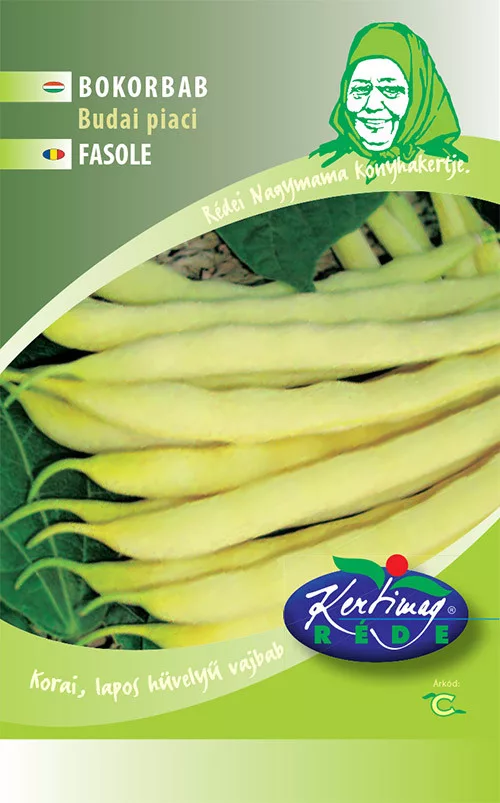 BUDAI PIACI Korai, bőtermő! Igen korai, szálkamentes, bőtermő fajta. Hüvelye 12-16 cm hosszú, világossárga színű, széles, lapos, szálkamentes.