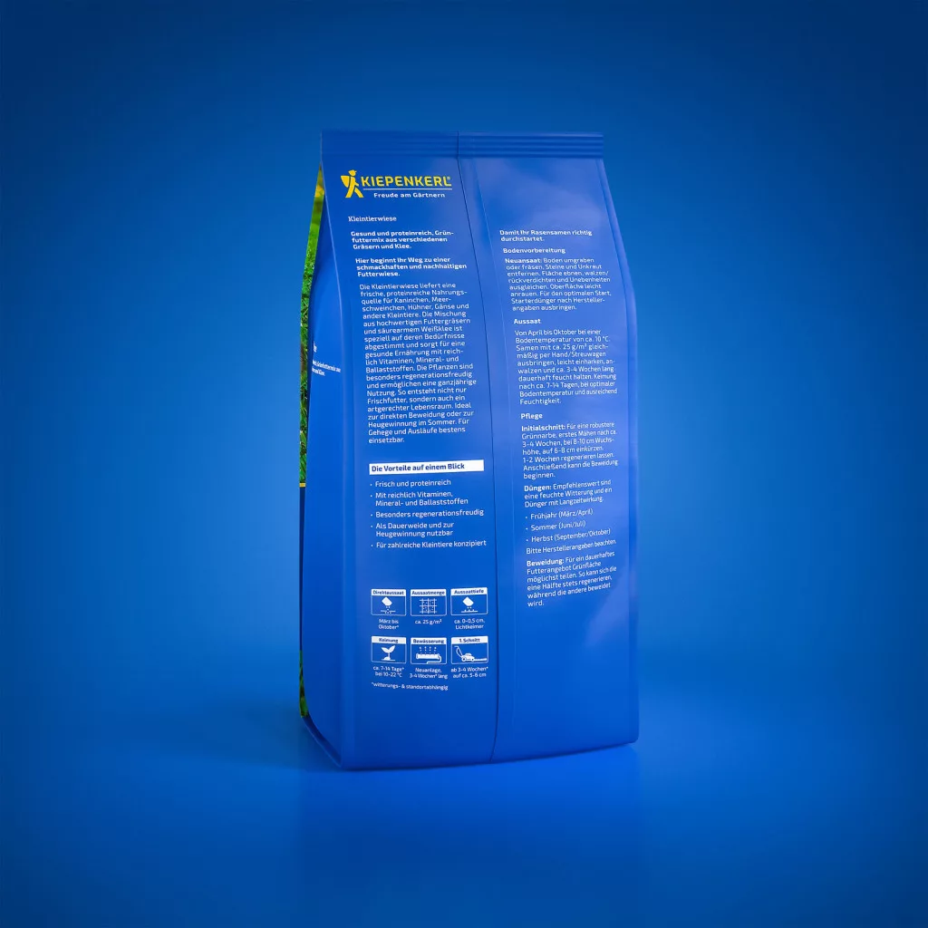 A Kiepenkerl kisállat legelője sok takarmányfüvet és savakban szegény fehér lóherét tartalmaz. Ez a fehérjékben gazdag keverék megfelel számos házi- és haszonállat, pl. tyúkok, lúdfélék, vadnyulak, házinyulak, tengerimalacok, teknősbékák és egyéb kisállatok igényeinek.