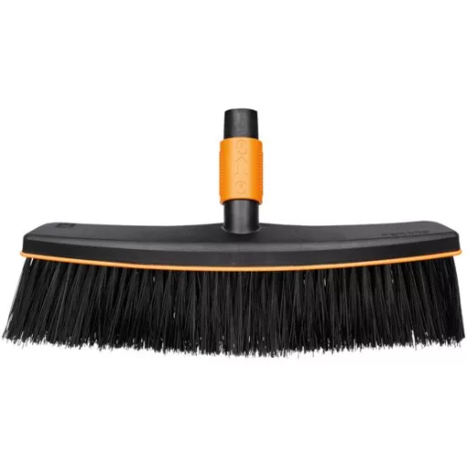 Nagy kinti felületek seprésére alkalmas széles QuikFit™ fej robosztus sörtékkel.