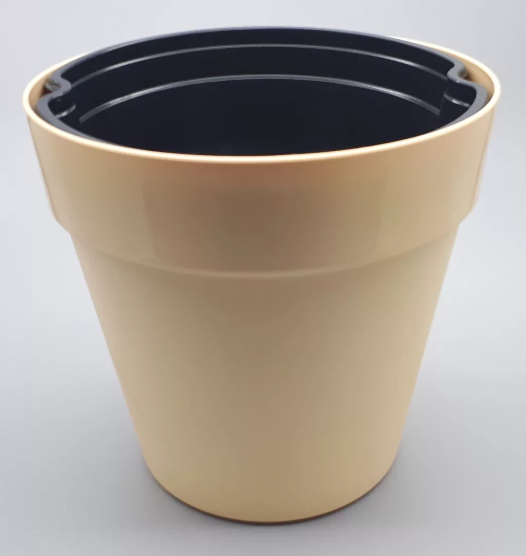 Dekoratív színes kaspó. A termék tartalmazza a kaspót a bele való műanyag cseréppel. Kaspó felső átmérője 28cm, alsó átmérője 19cm magassága 26,2cm Itató betét felső átmérője 27cm alsó átmérője 17,5cm, magassága 21cm A kaspó kétféle méretben, többféle szí...