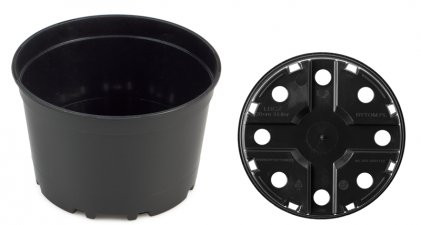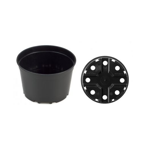 Darabos kiszerelésben kapható, fekete színű műanyag cserép, közepes méretű növények neveléséhez.