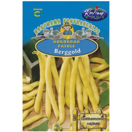 BERGOLD Aranysárga ceruzabab! Középkorai érésű, bőtermő házikerti fajta. A bokor 45 cm magas, erős lombozatú. Hüvelye 13 cm hosszú, szálkamentes, aranysárga színű, egyenes, kerek keresztmetszetű. Többszöri szedésre alkalmas fajta.