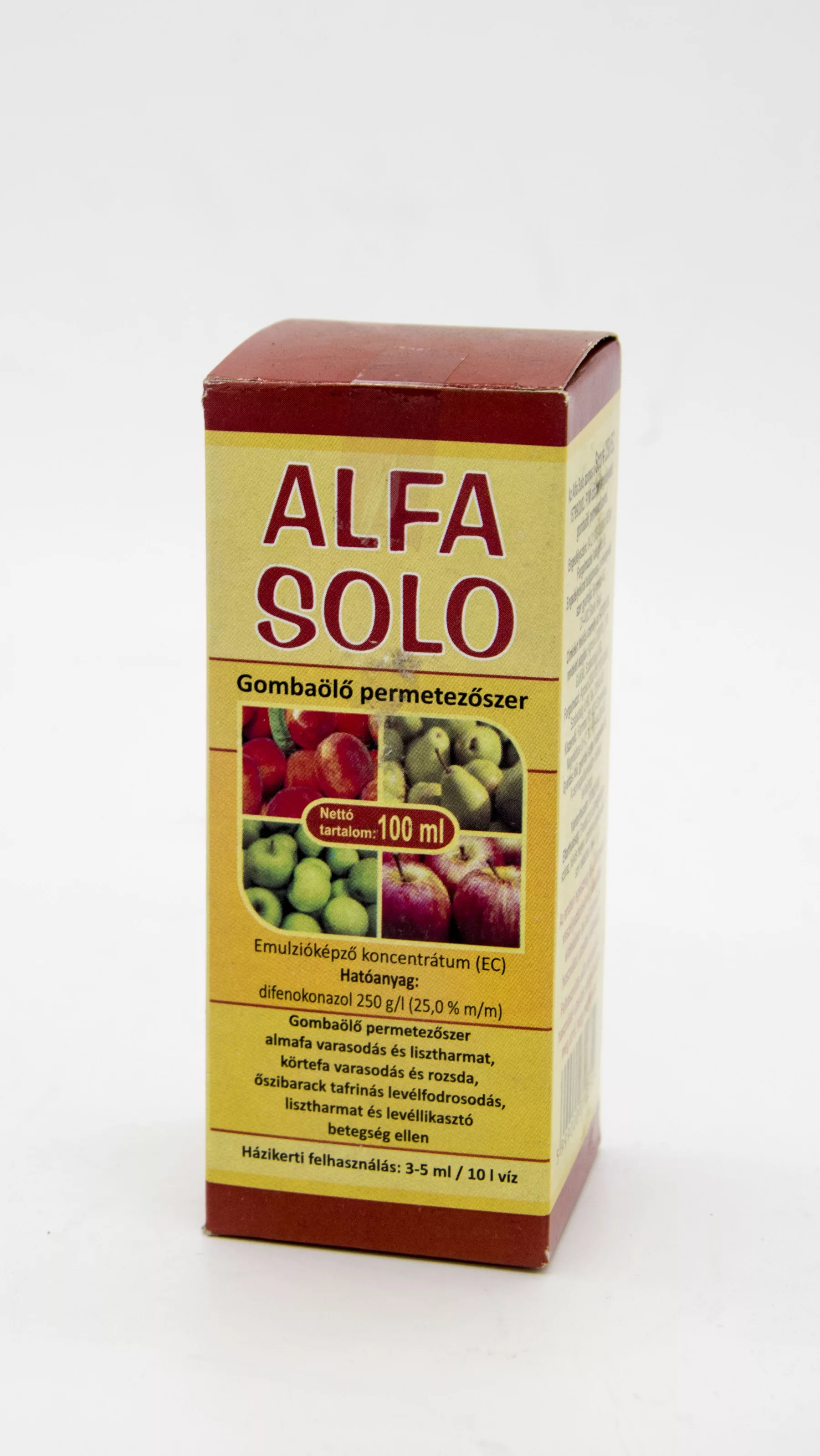 Gombaölő permetező szer lisztharmat, varasodás, rozsdabetegségek, és levéllikasztó betegségek kezelésére. Az Alfa Solo azonos a Score 250EC gombaölő szerrel. Házikerti adagolás: 3 ml/10 l víz. Hatóanyag: 250 g/l difenokonazol III. forgalmi kategóriájú...
