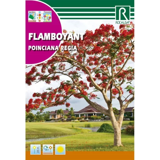 Legfeljebb 15 méter magas, de többnyire kisebb fa. Széles ernyő alakú koronát növeszt. Levelei kétszeresen szárnyaltak. Levele 30-50 centiméter hosszú, páfrányszerűen finoman tagolt, a körülbelül 1 centiméter hosszú levélkék száma a több százat elérheti. A levelek szórt állásúak; a száraz évszakban lehullhatnak, de csak rövid időre. Virága narancs- vagy skarlátvörös, 10-15 centiméteres; 5, kívül zöld, belül vörös csészelevéllel és 5 részben fehér vagy sárga színű, kárminpiros foltokkal. A virág közepén 10 hosszú, vörös szálú porzó és egy bibeszál van. A legtöbb virág a száraz évszak végén, az új levelekkel együtt jelenik meg, valóban szinte lángba borítva a fát. Termése feketésbarna, lapított, 30-60 centiméter hosszú, 4-7 centiméter széles, csüngő, többnyire kissé görbült és keresztben bordázott, fásodó hüvely, amely a következő virágzásig a fán marad.
