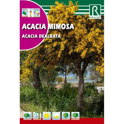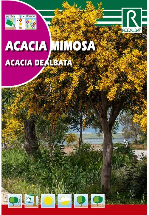 Terebélyes, kúpos, 20 méter magasra megnövő örökzöld fa. Kérge sima, zöld vagy kékeszöld, az idős példányoké csaknem fekete. A levelei kétszeresen szárnyaltak, 12 cm hosszúak. A levélkék keskenyek, ép szélűek, kékeszöldek és 5 mm-esek finoman molyhosak. A virágok aprók, illatosak, sárga szirmúak, számos feltűnő porzóval. Gömbszerű fejecskékbe tömörülnek, melyek hajtásvégi bugákba állnak. Tél végén tavasz elején nyílnak. A termése lapos, 7,5 cm hosszú, zöld, kékeszöld, éretten barna hüvely.