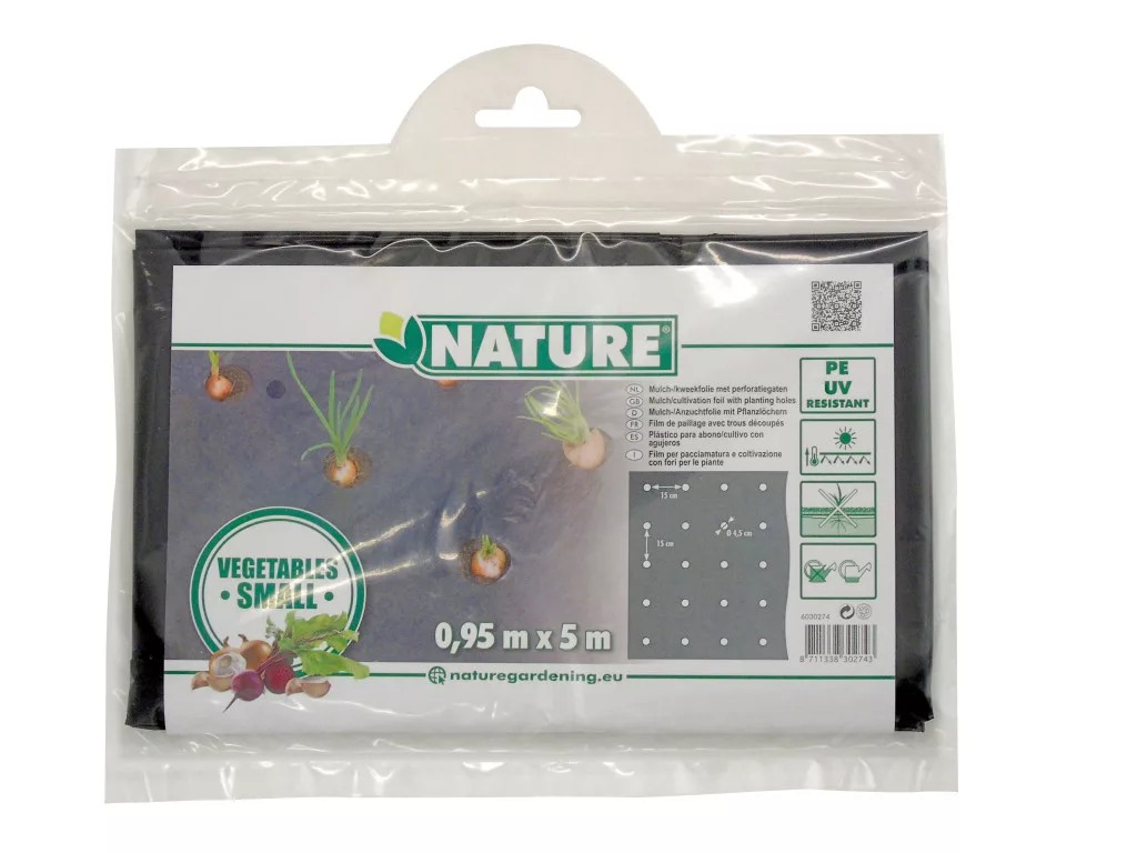 Takarófólia KIS ZÖLDSÉGEKHEZ fekete 20 mikron175x45mm 0,95x5m,ültetési lyukakkal