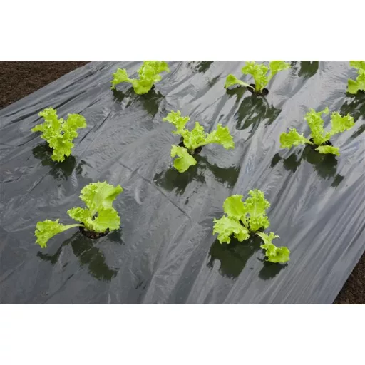 Fekete talajtakaró fólia, salátákhoz, ültetési lyukakkal. Nincs szükség átültetésre Korlátozza a talaj kiszáradását Véd a kártevők és a gyomok ellen Használatával időt spórol