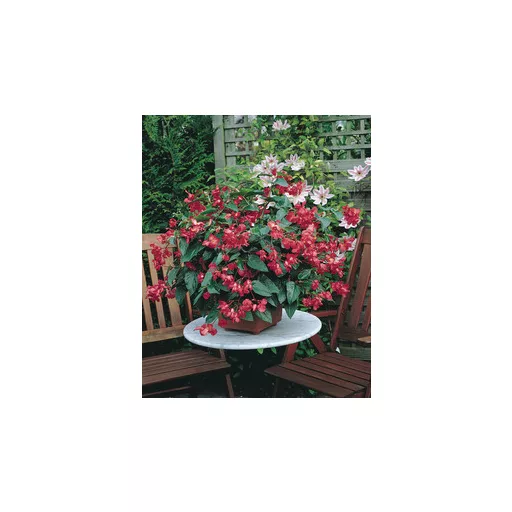 Begonia (Dragon Wings) piros: Sárkányszárny alakú leveléről kapta a nevét. Különösen ellenálló fajta.. Folyamatosan virágzó. Nagyméretű bokorrá nő a nyár végére. Ezt a közepes tápanyagigényű fajtát félárnyékos helyre ültessük, és nagyon figyeljünk az öntözésre, mert a túlöntözésre érzékeny.