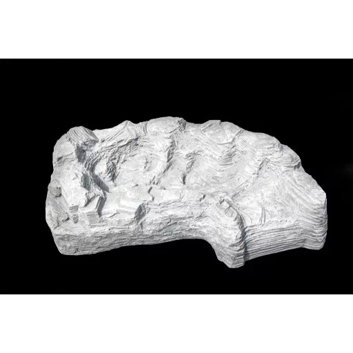 Colorado Curve bal vízeséselem – UV sugárzásnak ellenálló, fagyálló műanyagból készített bal íves vízeséselem szürkésbarna színezettel, természethű kőzet mintázattal.