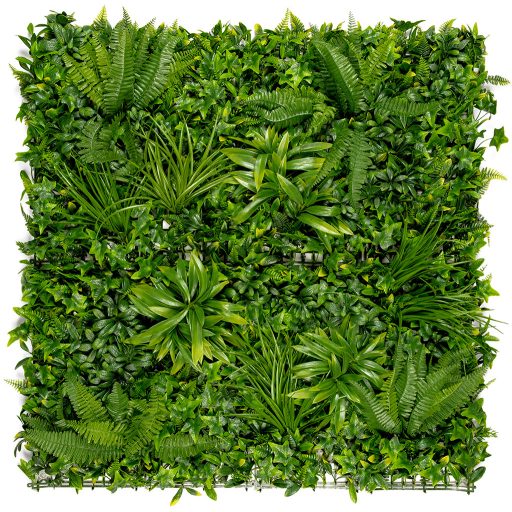Természetes hatású zöldfal trópusi növényekkel. Hálós rácshoz rögzített szintetikus levelek. Az egységek egymáshoz illesztve összefüggő felületet alkotnak. A műanyag alap ollóval vágható. Alkalmas beltéri és kültéri használatra egyaránt.