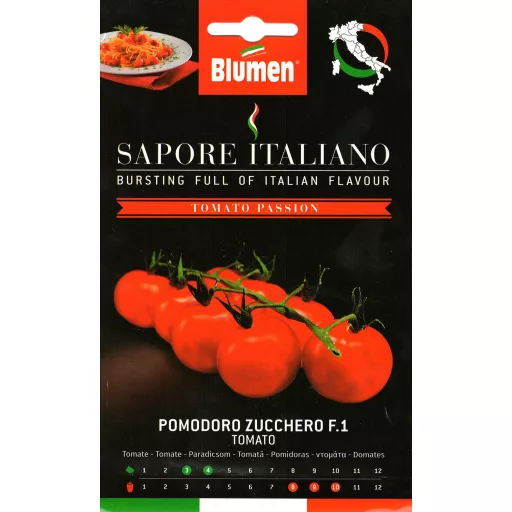 A „CUKOR” HIBRID (Zucchero - Solanum lycopersicum L. F1) - folyton növő. Napigényes. Javasolt vetési hőmérséklet: 20/30°C. Szabadföldbe, és fóliasátorba is vethető. 50 cm tőtávolságra, 0,5 - 1 cm mélyen vetendő. Vetési idő: Márc - Ápr, érés: Aug - Okt. Régiónként változhat az ültetési, betakarítási időszak a jelöltekhez képest. Dupla védőcsomagolásban biztosítjuk a kiváló minőséget, s a garantált kikelést a 3 P.A.C. rendszer szerint.