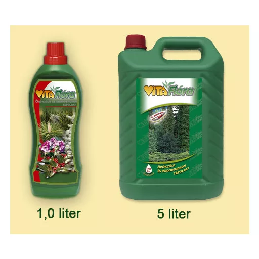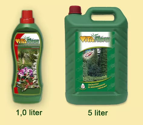 Az örökzöldeknek eredeti élőhelyükön a saját és egyéb növények lehulló lombja folyamatos tápanyagutánpótlást biztosít. Kertünkben viszont nekünk kell gondoskodnunk táplálékukról. A nitrogén, foszfor és kálium mellett kiemelkedő fontosságú a magnézium. Hiánya a gyenge növekedés mellett a levelek/tűlevelek sárga, illetve barna színéből ismerhető fel. Az elszíneződés kívülről befelé halad. A magnéziumhiány miatti barnulás megállítható, a tápanyaggal jól ellátott növény képes regenerálódni és ismét fajtára jellemző színével díszlik. A Vitaflóra Örökzöld és rododendron tápoldat magas magnéziumtartalma mellett minden egyéb tápanyagot is ideális összetételben biztosít az örökzöldeknek. A tápoldatot lombhullató sövények táplálására is eredményesen használhatjuk. A terméket alacsony sótartalom és savas kémhatás jellemzi, ami megfelel az örökzöldek savanyú talaj iránti igényének. A tápoldatot az öntözővízzel együtt juttatjuk ki, ezért csapadékszegény időszakban is hatásos.