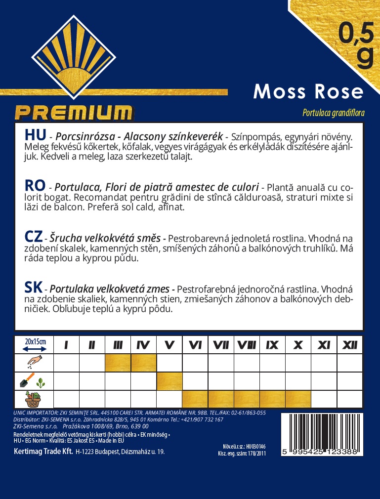 Elterülő pozsgás jellegű növény, színárnyalatokban gazdag virágokkal. A hajtásvégeken a 2,5-3 cm-es selymes fényű virágok napfényes időben reggel 9-10 órakor nyílnak és délután 2-3 órakor becsukódnak. Április végére állandó helyére is vethető, de magtakarékosság és egyenletes fejlődés céljából jobb előnevelni. A napos, meleg fekvést, és a laza, jó szerkezetű talajt kedveli. Kedvező helyen magról magától is újul. Sziklakertekben, támfalakon, kőlapos utak mellé, napfényes balkonládákba ültethető.