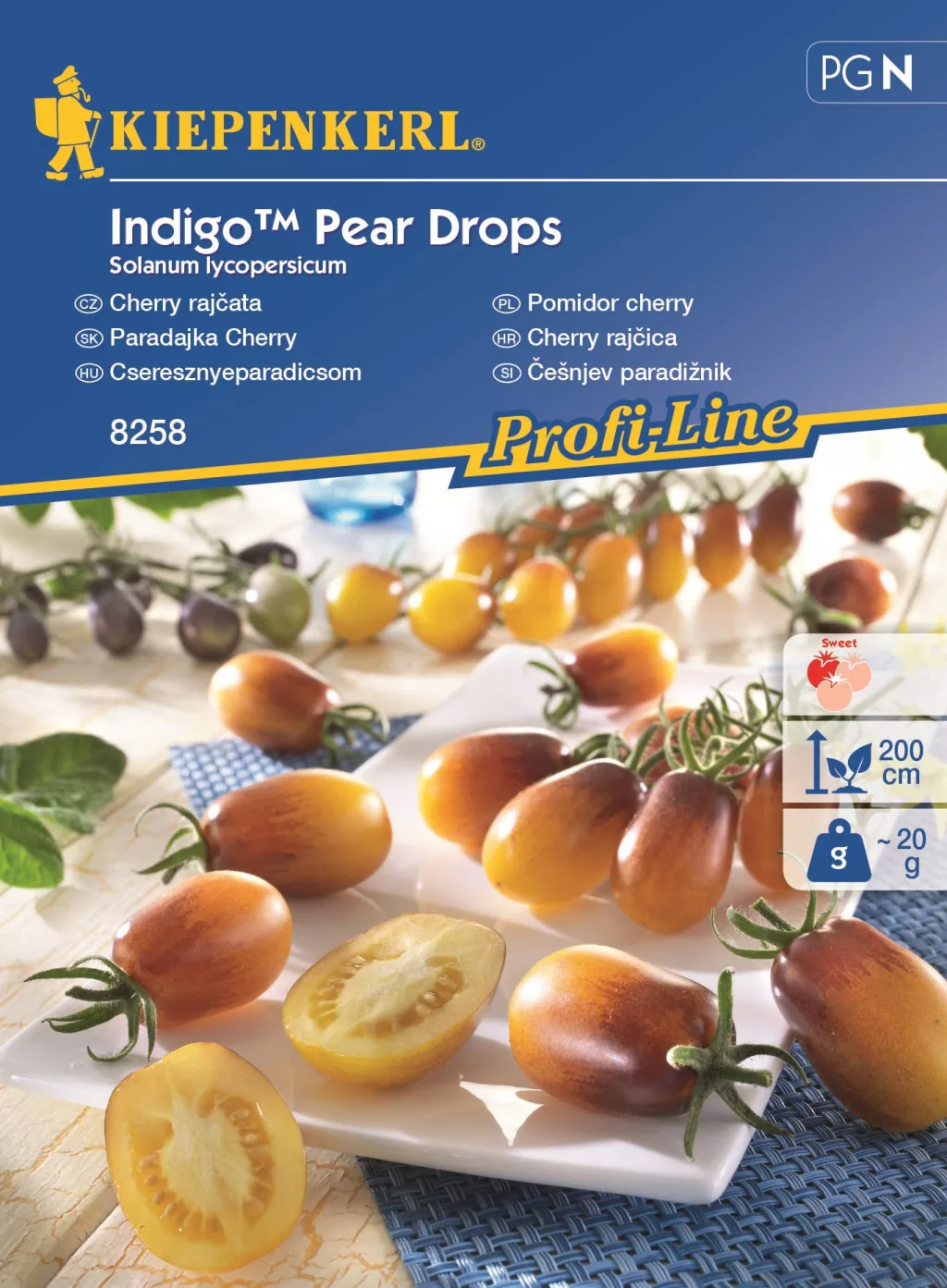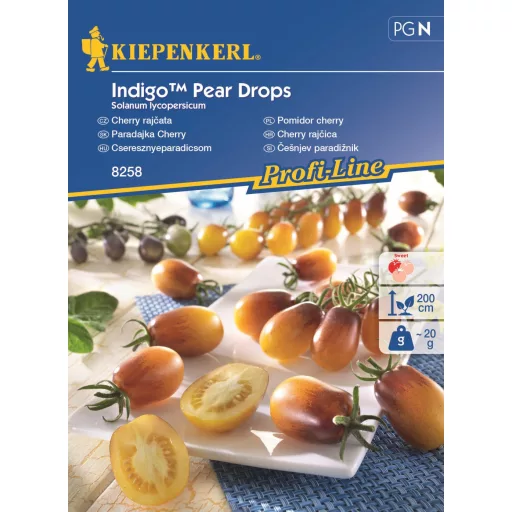 Körte alakú, dekoratív, kellemesen édes, sárga és lila mintás termések. Növényenként 60-100 db bogyót hoz.