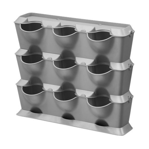 A GARDENA NatureUp! függőleges indulókészlet olyan rugalmas rendszer, amely a csupasz falakat is szemgyönyörködtetővé teszi virágok, fűszernövények és zöldségfélék gyors és egyszerű, fáradságmentes telepítésével. Az időjárásálló műanyagból készült ültetők összekapcsolható rendszere moduláris, akár szerszám használata nélkül is bővíthető. A tartók a földre vagy stabilan falra helyezhetők. Az ültetők vízelvezető rendszere megakadályozza, hogy összegyűljön a pangó víz. A felesleges víz az alul elhelyezett gyűjtőtálcába folyik össze. Így marad a fal és a padló mindig tiszta és száraz. A készlet tartalma 3 függőleges ültető, 3 fedél, 1 alaplemez és 12 kapocs.