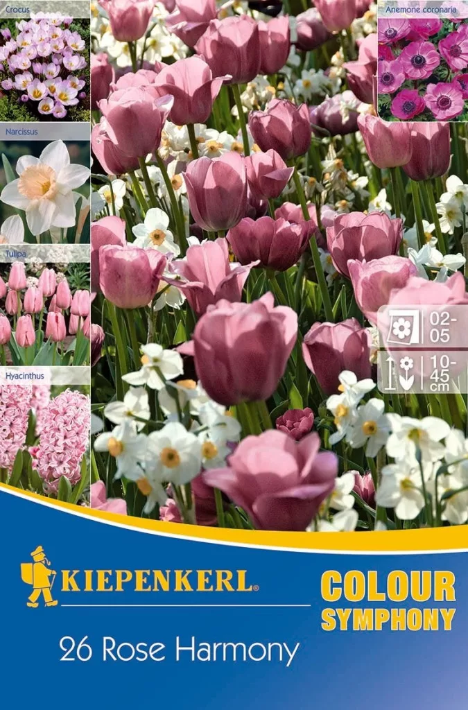 7 db krókuszt, 3 db jácint, 5 db tulipán, 4db nárcisz és 7db szellőrózsa hagymákat tartalmazó virághagyma keverék csomag. A virágok február-március között nyílnak, 10-45 cm magasságúak. Napfényes, félárnyékos helyet kedvelnek, balkonládába is nevelhetők, ültetés után alapos beöntözést igényelnek.