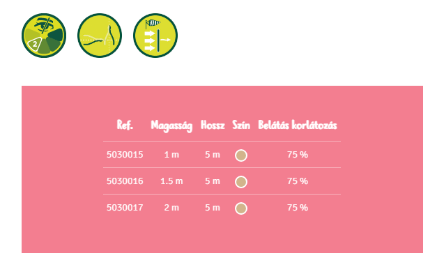 A belátáskorlátozók nem kerítés helyettesítők, használatukhoz azonos magasságú támrendszer szükséges.