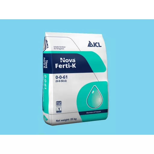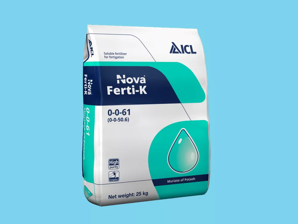 A Nova Ferti-k egy nitrogénmentes kálium műtrágya, amely fontos eleme a növények és gyümölcsök kialakulásának. Javítja a gyümölcs színét, édességét és olajtartalmát. A klór a káliummal együtt fontos szerepet játszik a növényi sejtek közötti általános ozmotikus nyomás szabályozásában, közvetlenül részt vesz a sztómák nyitásának/zárásának szabályozásában.