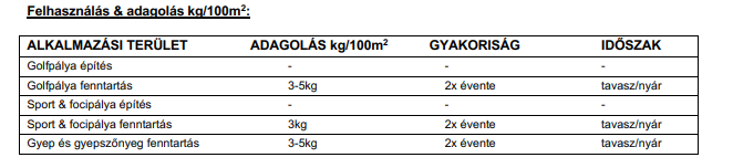 egyenletes mély zöld színt biztosít a gyepnek. Tavaszi alkalmazásával megfelelő mennyiségű nitrogénnel és