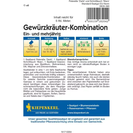 5 méteres vetőszalag 7 féle egynyári és évelő fűszernövénnyel.