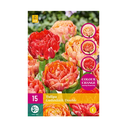 Különleges késői dupla tulipán. Ennek a tulipánnak kettős virágai vannak, ahol a sárga, narancs és piros színek váltakoznak virágzás közben. Jól kombinálható tavaszi virágokkal vagy kontrasztos tulipánokkal.